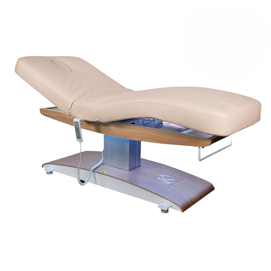 Miękkie i przyjemne pokrycie łóżka pozwala w pełni się zrelaksować i bez obaw oddać się w ręce profesjonalisty. Zastosowany materiał to tapicerka Wet Premium lub Silicone Premiumm, która należy do ekskluzywnych i przyjemnych w kontakcie ze skórą, a zastosowane wypełnienie o większej sprężystości wynikającej z połączenia różnych materiałów w tym warstwy silikonowej, daje poczucie komfortu w trakcie zabiegów.